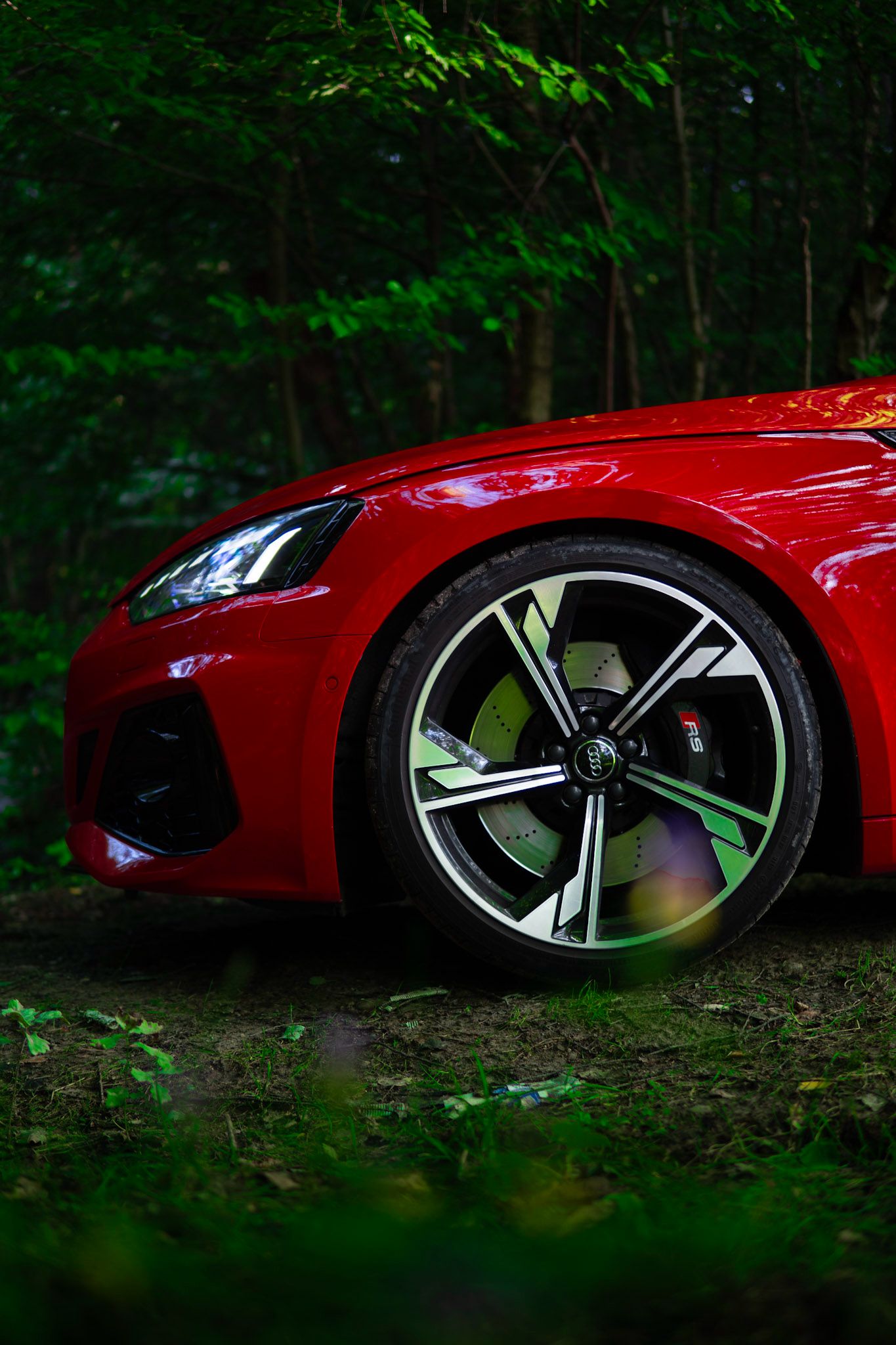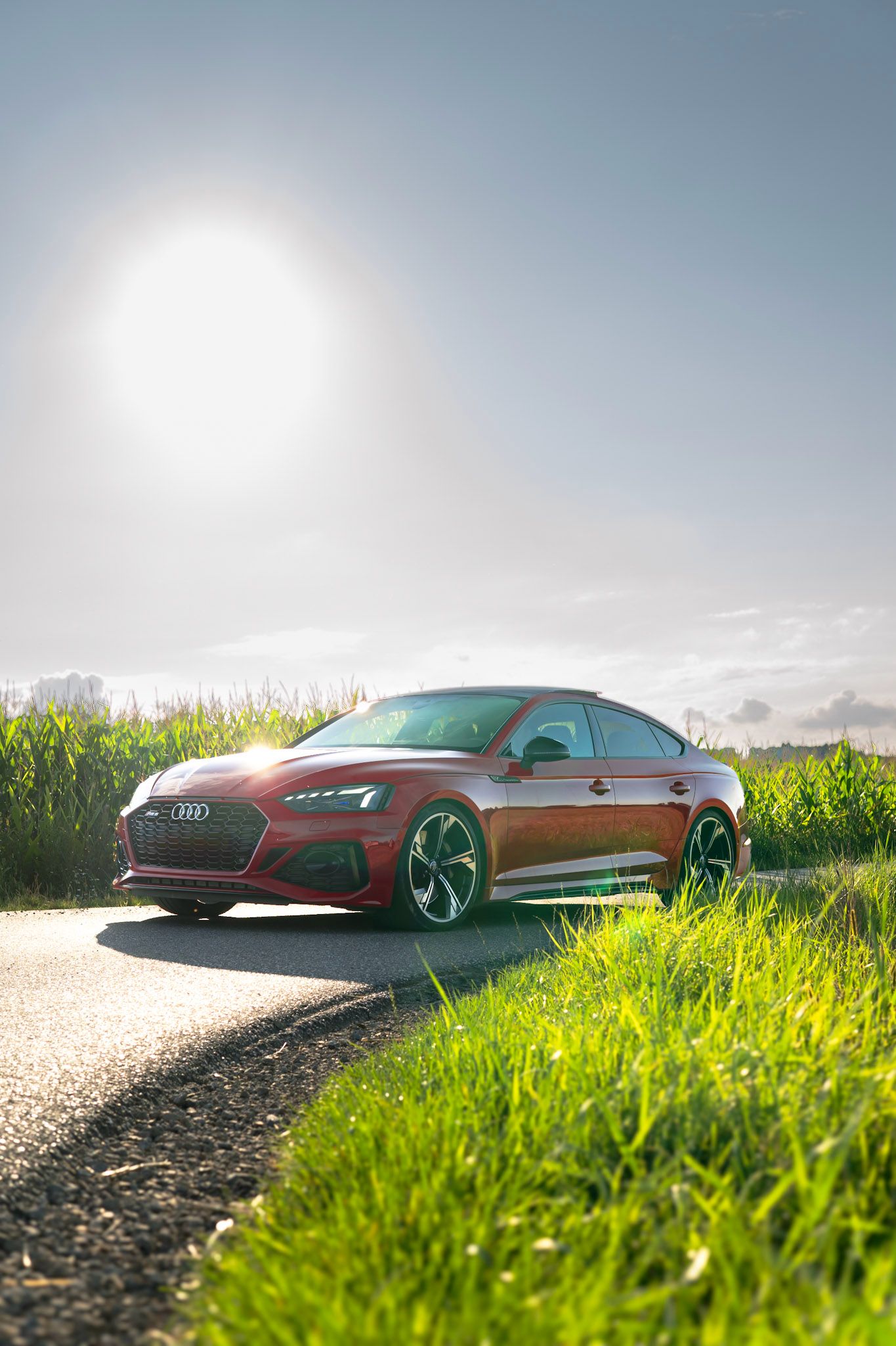 Z zewnątrz Audi RS5 zachwyca agresywną, a zarazem elegancką sylwetką. Charakterystyczne elementy, takie jak szerokie nadkola, sportowe zderzaki, dyfuzor i poczwórne końcówki wydechu, podkreślają sportowy charakter pojazdu.